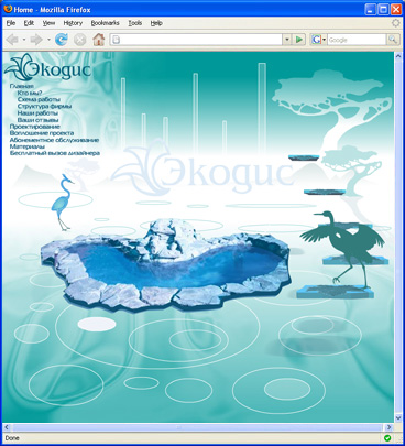 В подобных, анимированных, сайтах обычно наибольшие трудности доставляет попытка сочитать художественность с насыщенной информацией. Решение я нашел найдено в использовании собственного оконного интерфейса.