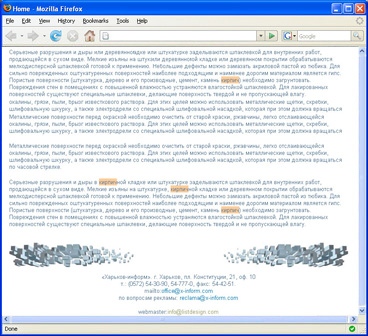 Соержит около 3000 страниц — каталог строительных фирм, прайсов строительных товаров, статей на строительную тематику. Систему автообновления, поиска. Были использованы некоторые новые, по тем временам, технологии. Проект был сдан в середине 2003 года. Через полгода имел до 700 уникальных посетителей в день.