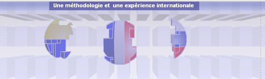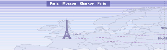 Три части головоломки окрашеных в цвета флагов Франции Украины и РОссии собираются в один шар и преобретают вид логотипа компании.