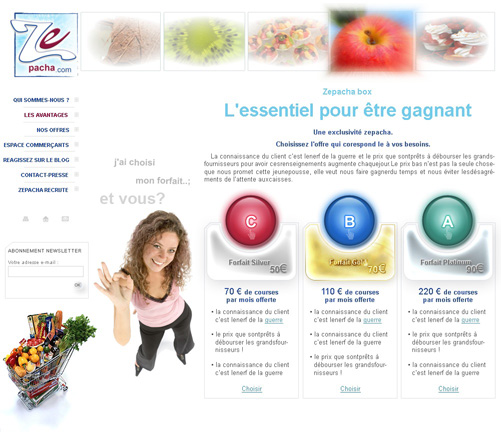 Сайт фирмы "ZePasha", занимающейся доставкой он-лайн заказов на продукты питания
